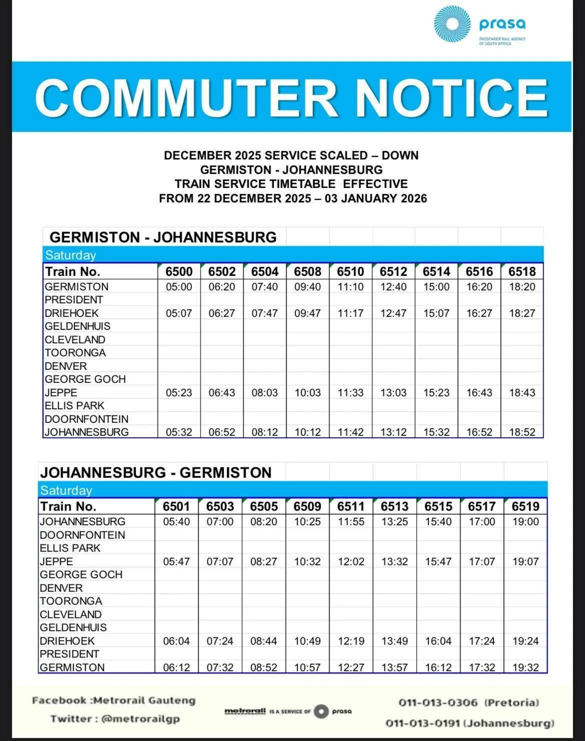 See the December 2025 scaled-down timetable for the travel times of the trains: